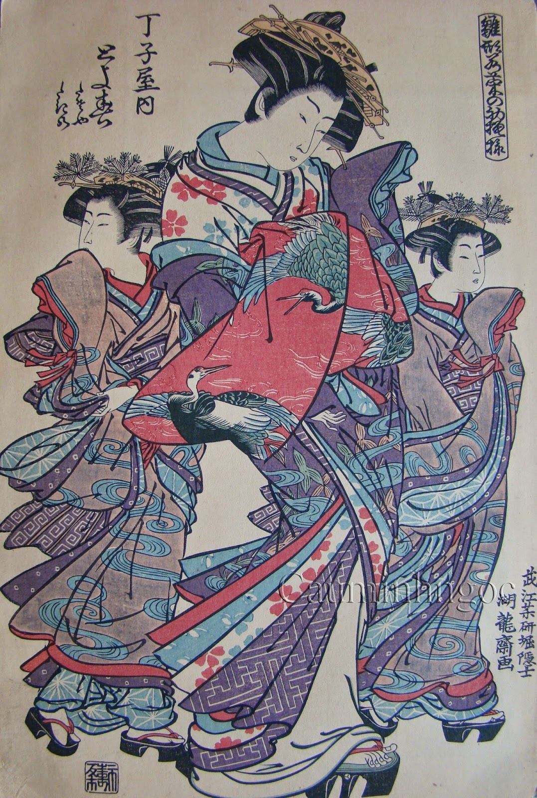 Nghi ngờ không phải bản gốc. Có thể bộ này được cho in vào cuối TK 19 và đầu TK 20. Vào thời Minh Trị thiên Hoàng cho thực hiện lại trên bản khắc gỗ cũ với mục đích giới thiệu quảng bá nền văn hóa cổ. Một vài tờ trong bộ này không có chữ ký in của tác giả Harunobu. Tờ thứ sáu trong bộ có khắc in tên người chịu trách nhiệm xuất bản. Kyosen ( Cự Xuyên ) và con dấu riêng.